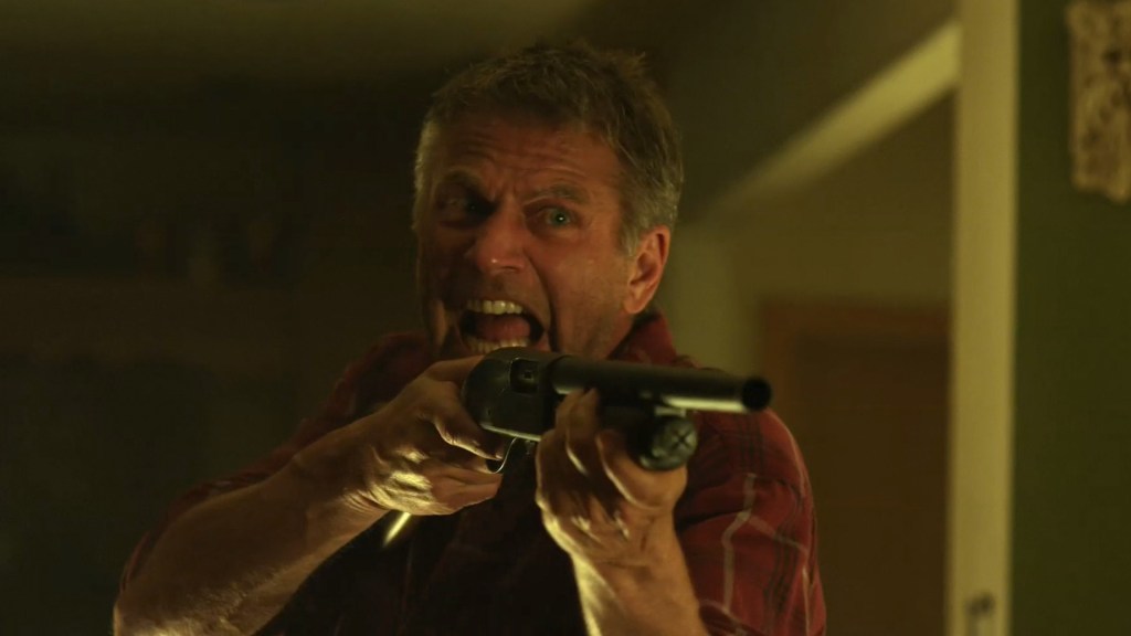 Van Hausen has the ability to jump from person to person, which is a lousy rule to begin with. Then, the friends come across the cemetary’s caretaker, McBride (Hanks), who convinces them that Warden Wilkes’s spirit could fight Van Hausen’s spirit on the astral plane. And that’s what happens. Two ghosts start to fight each other. The special effects are horrid though and the “fight scene” is therefore, hilarious. The ghosts kind of looked like Casper, to be honest. In the end, McBride allows both spirits to possess him and somehow that causes an explosion, but it doesn’t end there. Jerry, Johnny (Wayne) and Natasha (Hogan) make it back to their campsite where it is revealed that Johnny is now possessed by Van Hausen. And he kills the girls as the scene fades.
