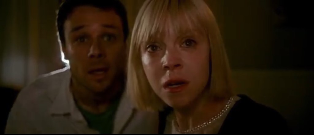 In the beginning of the movie, David (Evans) believes his wife, Alice (Hoekstra), is having an affair. Turns out he is right. When he finds out, he considers killing her, but stops short. He does however, hear a voice in a creepy bathroom and then he witnesses a horrifying, ghostly figure, murder his wife. He reports Alice missing later, but never mentions the voice or the ghost.